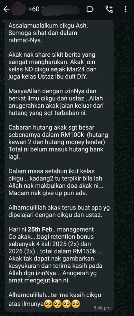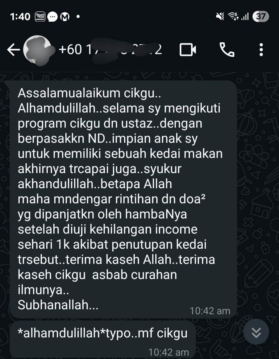 Bukan cakap kosong — ada modul ringkas: niat, doa, fokus, rezeki & muhasabah.